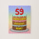 This fun and cheerful birthday jigsaw puzzle design features a cartoon-style depiction of a three-tier birthday cake having number-shaped candles on top showing the age “59“, along with the message “HAPPY 59TH BIRTHDAY,”, and a customizable recipient name. The background features a multi-color pastel rainbow spectrum inspired gradient pattern. A colorful, editable birthday puzzle like this might be given in celebration of somebody’s fifty-ninth birthday. [~Z0000621]