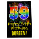 This exciting, colourful, and fun birthday themed giftbag design features a large number "59" with a rainbow spectrum gradient inspired pattern, along with the message "Happy 59th Birthday,", and a custom recipient name. It also has a colourful background pattern inspired by the appearance of bursting celebratory fireworks. A gift bag like this might be a fun way of wrapping a birthday present or gift being given to somebody who is celebrating their fifty ninth birthday. [~Z0000509]