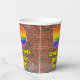 This exciting and fun urban graffiti and street art inspired birthday paper cup design features a large number “59” with a colourful rainbow spectrum gradient inspired pattern, along with the message “Happy 59th Birthday,”, and a personalised name. The background features a brick wall pattern. Colourful, vibrant paper cups like this might be fun to have at a birthday party being held in celebration of somebody’s 59th birthday. [~Z0000543]