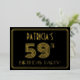 The front of this 1920s-1930s style inspired fifty-ninth birthday party foil invitation features a custom name, a large art deco style inspired number “59TH”, the message “BIRTHDAY PARTY!”, and a border pattern consisting of lines. The front also has a black-coloured background by default, but it can be customised to a different colour if desired. The back features personalised details about the event, such as the date, time, location, and any other relevant information. Elegant, luxurious, personalised invitations like these might be used to invite guests to a birthday celebration/party being held to celebrate somebody’s 59th birthday. [~Z0000590]