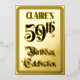 The front of this fancy fifty-ninth birthday celebration foil announcement card design features the message “59th Birthday Celebration” in ornate script-style text. It also has a customisable name. The back features personalised details about the event, such as the date, time, place/venue, and any other important information. Ornate, opulent, customisable invitations like these might be used to invite guests to a birthday celebration/party being held in celebration of somebody’s fifty-ninth birthday. [~Z0000596]