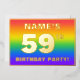 The front of this eye-catching fifty-ninth birthday party/celebration foil invitation card design features a custom name, a large number “59th”, the message “BIRTHDAY PARTY!”, and a border. The background of the front features an exciting, multicolored, rainbow spectrum inspired gradient pattern. The back features personalised details about the event, such as the date, time, location/venue, and any other relevant information. Personalised invitations like these might be a fun way to invite guests to a birthday gathering being held to honour somebody’s 59th birthday. [~Z0000599]