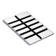 Inspired by a map symbol for railroad tracks, this bold geometric pattern features five vertical black lines split in half by a horizontal black line down the centre. The black on white pattern has a sleek look.
