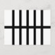 Inspired by a map symbol for railroad tracks, this bold geometric pattern features five vertical black lines split in half by a horizontal black line down the centre. The black on white pattern has a sleek look.