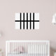 Inspired by a map symbol for railroad tracks, this bold geometric pattern features five vertical black lines split in half by a horizontal black line down the centre. The black on white pattern has a sleek look.