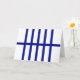 Inspired by a map symbol for railroad tracks, five blue stripes are split in half by a blue line down the centre. The blue on white geometric pattern has a clean, sleek look.