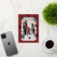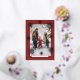 Silver foil snowflakes Merry Christmas rustic elegant red family multi photo winter holiday card template with a chic script overlay. +++++++++++++++++++++ Easy to personalise with 5 custom photos, your text, and your family name on both sides!