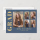 5 Photo Grad Collage Modern Script Blue and Gold Postcard