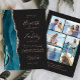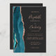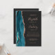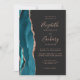 5-Photo Teal Blue Rose Gold Agate Dark Wedding Invitation