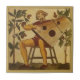 Reproduced from a circa 1880 series of 12 Medieval Minstrel tiles by Copeland & Sons. Each tile features a different musician playing a period instrument in a natural setting. Some of the instruments represented include violin/viola, cello or base, lute, mandolin, drum, pan pipes, recorder, a large zither type of string instrument, and more.