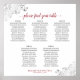 This 5 table wedding seating chart will help your guests find the right table at your reception. The design is both simple and elegant with dark gray and red text on a white background and lacy silver faux foil floral filigree in the corners. The title reads "please find your table" in an elegant script calligraphy. Sophisticated and chic. Includes table assignments for 50 guests with 10 seats per table.