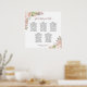 This beautiful 5 table wedding seating chart has space for 50 guests at 5 tables with 10 seats at each table. It features a hand painted watercolor floral design with pink, coral, and mauve coloured roses and blossoms, as well as eucalyptus leaves and garden greenery. The elegant script calligraphy title reads please find your table, and there is space for the names of the couple at the bottom. Wonderful way to add rustic elegance to your wedding reception while making it easy for your guests to find their seats.
