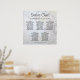 Make your wedding reception beautiful with this seating chart. Designed as a part of our White Reflections Wedding Suite, it features black text over a background of reflecting white flowers and hearts. This chart shows table assignments so your guests will have an easy time finding the right table.