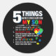 5 Things You Should Know About My Son Autism Aware Classic Round Sticker