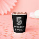 This Roaring Twenties inspired and vintage appearance birthday themed paper cup design features a large art deco inspired appearance number “5”, along with the birthday greeting message “Happy 5th Birthday,” and a personalised name. The background is coloured black. Birthday themed paper cups like this might be used at a birthday party celebrating somebody’s fifth birthday. [~Z0000542]