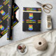 This cheerful, fun, and colourful birthday wrapping paper design features a large number "5" and the message "HAPPY BIRTHDAY,", both having a rainbow spectrum gradient inspired pattern colouring, along with a bold yellow customisable recipient name. The background is coloured black. Fun birthday themed wrapping paper like this could be used to wrap a gift or present being given to celebrate somebody’s 5th birthday. [~Z0000475]
