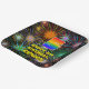 This upbeat and exciting birthday themed paper plate design features a large number “5” having a colourful rainbow spectrum inspired gradient pattern. It also features the message “HAPPY 5th BIRTHDAY,”, and a personalised name. The background of the front has a vibrant, colourful pattern inspired by bursting celebratory fireworks. Paper plates like this might be used at a party for somebody who is celebrating their fifth birthday. [~Z0000604]