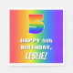 This joyful and vibrant birthday-themed paper napkin design features a large number “5” having a colourful rainbow spectrum inspired gradient pattern. It also features the message “HAPPY 5th BIRTHDAY,”, and an editable recipient name. The background also features a cheerful multicolored rainbow spectrum inspired gradient pattern. Exciting birthday themed paper napkins like this might be used at a party for somebody who is celebrating their 5th birthday. [~Z0000573]