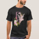 I give wanted to give this a 4 instead of a 5 because these Basic DARK T0shirts run unexpectedly SLIM or Narrow. Which is great if you do not have a potbelly, but I have a paunch. It isn't the shirt's fault that I've got a beer belly. The design and shirt itself is a quality cotton shirt. The color is more of a deep purple, but still a very pretty color. The Basic DARK T-shirts run a bit SLIMMER than the Basic Ts. The neck is a fraction narrower (or seems to be narrower) also. I'm a paunchy middle-aged woman and my neck is 12 inches (31cm) thick and the neckline fell about the same as in the photo of the man, and I had the desire to tug it a bit. So if you're a thick necked man or like loose shirts, be aware these are slimmer shirts. Once I get rid of my lockdown paunch it'll look great. The shirt washed well in cold water with no apparent bleeding. We don't have a dryer, so it hung dry. Did not shrink. Love the colors and the design. The design looks smaller on my shirt than it does on the model on-line. But still, it looks good on the shirt. The printing looks as it does on the model, just the size seems fractionally smaller. Washed garment in cold water, hung dry and design appeared unaffected.
