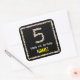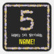 This fun, botany-inspired birthday square sticker design has the message “Happy 5th Birthday,” along with a personalised recipient name. The large number “5” plus the border both feature flower icons. Birthday themed stickers like these might be used or distributed at a birthday party celebrating somebody’s fifth birthday, or perhaps used when preparing invitations or presents for such an event. [~Z0000652]