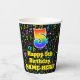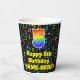 This joyful and cheerful music themed birthday paper cup design features a large number “5” with a rainbow spectrum gradient inspired pattern, along with the message “Happy 5th Birthday,”, and a personalised name. The background features an exciting and colourful pattern of various music notes and symbols of different colours and sizes. Colourful, vibrant paper cups like this might be fun to have at a birthday party being held to celebrate somebody’s fifth birthday. [~Z0000541]