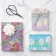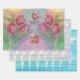 This cute tulip wrapping paper set features three flat sheets of tulip-themed Birthday Design. A pink tulip field with butterflies, purple-pink gradient tulips, and blue gradient tulips sheet. The first sheet has Veronica's 5th Birthday as text and here you can update the name of the birthday girl or remove the text. Each paper sheet has a different tulip pattern and colour that complement the main invitation.