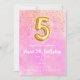 Cute Pink gold glitter 5th birthday invitation.