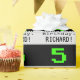This nerdy and fun birthday wrapping paper design features a large green 8-bit gaming style number "5" on a black coloured background. It also features the birthday greeting message "Happy 5th Birthday,", and a name that can be personalised. Wrapping paper like this might be used when wrapping gifts being given to somebody in celebration of their fifth birthday. [~Z0000403]