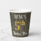 This luxurious and opulent birthday paper cup design features a customisable name and the message “5th Birthday Party”. The large number “5th” features a faux/imitation gold-inspired colouring pattern, the words “Birthday Party” are in elegant script-style text, and the background features an imitation/faux woodgrain-inspired pattern. Ornate, fancy paper cups like this might be useful to have at a birthday party/celebration being held to celebrate somebody’s fifth birthday. [~Z0000568]