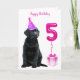 Send special 5th Birthday wishes to your favourite 5 year old girl with this cute Black Labrador Puppy and pink number 5 balloon happy birthday card - See matching accessories for your birthday celebration .