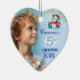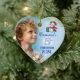 Beautiful personalised ceramic heart ornament decoration family photo keepsake of little boys 5th Christmas to hang on the wall and on the tree every year. Personalise it with a photo of your child and his name, keep a record of him as he grow up to hang on the tree.