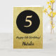 5th Happy Birthday Black and Gold Glitter Card with personalised name. For further customisation, please click the "Customise it" button and use our design tool to modify this template.