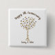 Personalised 5th wood wedding anniversary badge with a butterfly tree made from purple and wooden hearts.