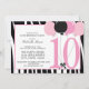 Cute tenth birthday party invite in zebra print with pink and dark grey balloons