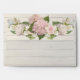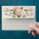 5x7 A2 Custom designed two-sided preprinted return address envelopes to match the wedding invitation, bridal shower party and rehearsal dinner invitations in this set. PLEASE NOTE: THESE TAKE 3-4 WEEKS TO HAND MAKE SO ALLOW ENOUGH TIME TO RECEIVE THE ENVELOPES BEFORE SENDING OUT INVITATIONS. The background is a faded, worn, distressed barn wood fence background with a floral border both inside the envelope and on the back flap. There are pink and creamy white roses, rose buds and pink hydrangeas with mint green succulent leaf foliage for a modern, pretty and classy style. Hand painted by Audrey Jeanne Roberts, copyright, all rights reserved.