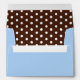 This 5x7 Blue Outside Polka Dot Inside Envelope. Great choice for invitations, announcements and professional mailings. Vibrant, full-bleed, full-colour printing. Printed on 80lb text weight, matte surface. Contains 50% recycled content. We have an entire line devoted to this design here at zazzle store under the * Design Collections menu tab to include invitations (5x7), Return Labels, Mailing Labels, Envelope Seals, Postage Stamps, Cup Cake Picks, Water Bottle Wrappers, Hershey's 1.55 oz. Large Bar Wrappers, Hershey's Miniature Stickers, Microwave Popcorn Bag Wrappers, Writable Place Cards, Goody Bag Toppers, FLAT Thank You Cards (4x5), FOLDED Thank You Cards (4x5), Favour Tags, Menu Cards, Mint Matchbooks, Lollipop Covers, Bookmarks, Bingo Cards, Bingo Card Markers, Bingo Card Call Out Sheets, Writable Advice cards (4x5), etc.