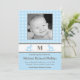 5x7 Boy Blue Monogram PHOTO Birth Announcement