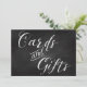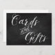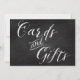 Faux chalkboard effect under elegant script printed on a 5x7 card suitable for wedding receptions or other parties.