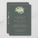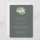 A dark grey green, flat wedding itinerary/schedule card to outline all your wedding events. Featuring an elegant arrangement of hand painted snowberries and eucalyptus on the front and a wreath on the back of the card. All text is fully editable. This card is available with alternative botanical designs, in different colours and also as a smaller enclosure card. Please view the Collection in my store to see all options and coordinating items.