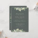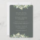 A dark grey green, flat wedding itinerary/schedule card to outline all your wedding events. Featuring an elegant arrangement of hand painted snowberries and eucalyptus on the front and a wreath on the back of the card. All text is fully editable. This card is available with alternative botanical designs, in different colours and also as a smaller enclosure card. Please view the Collection in my store to see all options and coordinating items.