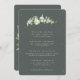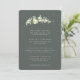 A dark grey green, flat wedding itinerary/schedule card to outline all your wedding events. Featuring an elegant arrangement of hand painted snowberries and eucalyptus on the front and a wreath on the back of the card. All text is fully editable. This card is available with alternative botanical designs, in different colours and also as a smaller enclosure card. Please view the Collection in my store to see all options and coordinating items.