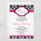 5x7 Hot Pink Damask Quinceanera Invitation