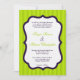 This 5x7 Sized beautiful Lime Green & Purple Stripe Ashley wedding invitation is both elegant and chic. It's printed on elegant 90lb linen cover weight paper has a beautiful textural surface of embossed laid lines. Perfect for your most formal invitations and event announcements. These come with standard white envelopes. We have an entire line devoted to this design here at zazzle store under the * Design Collections menu tab to include invitations (5x7), Return Labels, Mailing Labels, Envelope Seals, Postage Stamps, Cup Cake Picks, Water Bottle Wrappers, Hershey's 1.55 oz. Large Bar Wrappers, Hershey's Miniature Stickers, Microwave Popcorn Bag Wrappers, Writable Place Cards, Goody Bag Toppers, FLAT Thank You Cards (4x5), FOLDED Thank You Cards (4x5), Favour Tags, Menu Cards, Mint Matchbooks, Lollipop Covers, Bookmarks, Bingo Cards, Bingo Card Markers, Bingo Card Call Out Sheets, Writable Advice cards (4x5), etc.