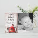 This 5x7 Sized adorable Photo Birth Announcement is both trendy and chic. It's printed on smooth, vibrant, matte 110lb cover weight paper. Contains 50% recycled content. Perfect for your most formal invitations and event announcements. These come with standard white envelopes.