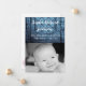 This 5x7 Sized adorable Photo Birth Announcement is both trendy and chic. It's printed on smooth, vibrant, matte 110lb cover weight paper. Contains 50% recycled content. Perfect for your most formal invitations and event announcements. These come with standard white envelopes.