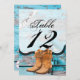 5x7 Table Number Card Blue Wood Barn Door Boots