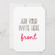Customise your invitation in Corjl. After you are done editing, download the front and back of your invitation in JPG or PDF format and make sure to select the "SHOW BLEED" option. Upload your design here by clicking on the blue "Personalise" button. Please contact us if you need assistance or have any questions.