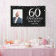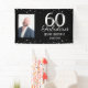 Elegant black 60th birthday banner with adjustable Happy Birthday and Custom Name Text. Pick your favorite photo and upload! Faux foil silver confetti and 60 number.