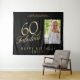 Elegant Golden 60 and Fabulous Birthday Photo Black Backdrop Tapestry. 60 and fabulous text in trendy golden script on black background. Personalise it with your photo, your name and your age, and make your own elegant birthday party backdrop for a woman`s birthday party.