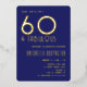 Unique elegant luxurious foil birthday invitation for a big moment in your life. Beloved “60 and FABULOUS “ theme for celebrating this important milestone. This foil invitations with classy navy blue background and all gold foil typography will impress the recipient. Entirely customisable and personalizable text, foil available in three colour options . Decorative retro vintage font choice.